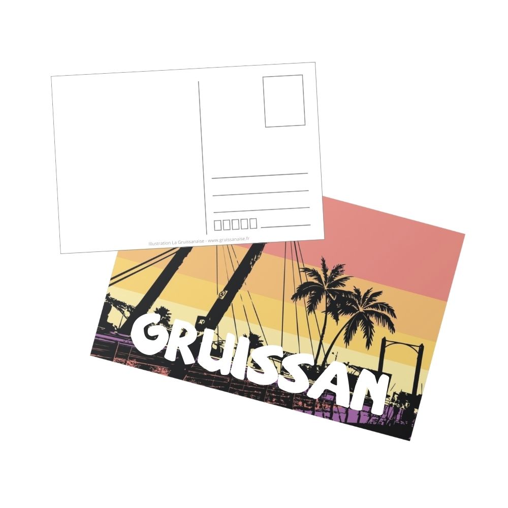 Offrez un morceau de Méditerranée avec cette carte postale illustrée aux couleurs de Gruissan, charmant village de pêcheurs niché entre mer et étangs. Retrouvez les emblèmes emblématiques : les chalets sur pilotis, la tour Barberousse, les salins roses et les ruelles typiques du vieux village.